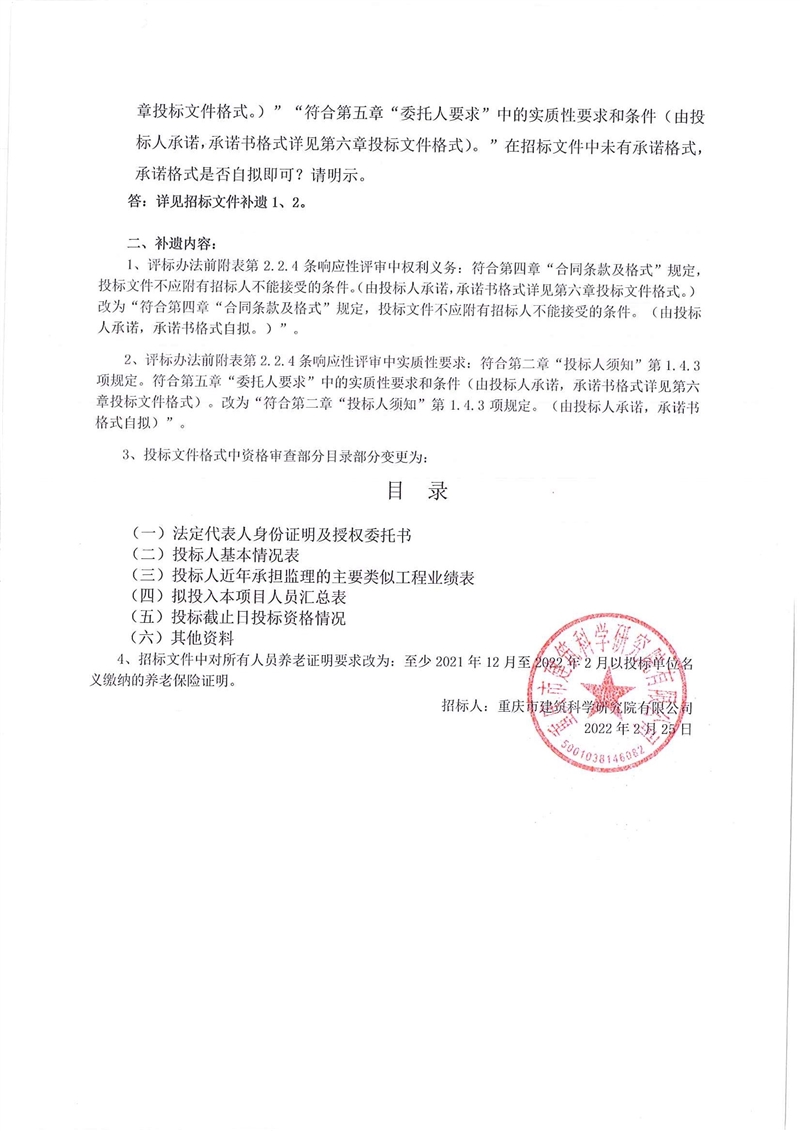 4、招標文件中對所有人員養老證明要求改為:至少2021年12月至2022年2月以投標單位名義繳納的養老保險證明。