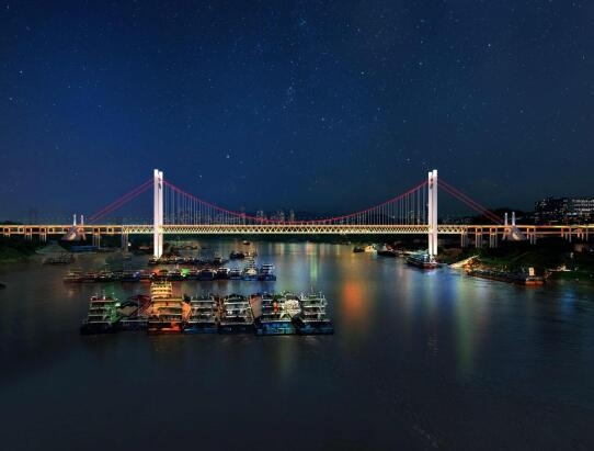 黃桷沱長(zhǎng)江大橋?yàn)橹貞c快速路八聯(lián)絡(luò)線(xiàn)咽喉要道,大橋全長(zhǎng)1260m,為單跨懸吊雙塔三跨連續(xù)鋼桁梁懸索橋,采用雙層橋面布置,上層為雙向6車(chē)道城市快速路,下層中央預(yù)留雙向軌道,兩側(cè)為雙向4車(chē)道城市主干路,為世界在建最大跨徑路軌兩用懸索橋,也是市建科院公司承接的重大監(jiān)理項(xiàng)目之一。